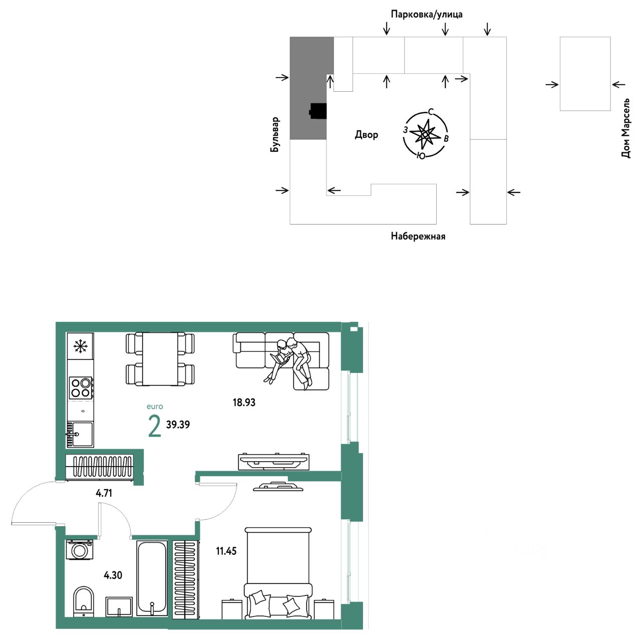 Продается 2комнатная квартира на 6 этаже от застройщика Страна Девелопмент. Площадь квартиры 39,39 кв. м. Стоимость указана без учета акций.