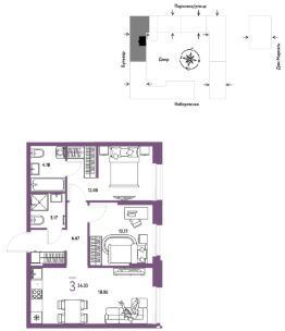 Продается 3комнатная квартира на 9 этаже от застройщика Страна Девелопмент. Площадь квартиры 54,33 кв. м. Стоимость указана без учета акций.