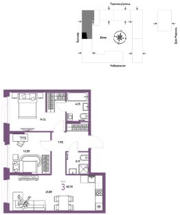 Продается 3комнатная квартира на 10 этаже от застройщика Страна Девелопмент. Площадь квартиры 62,18 кв. м. Стоимость указана без учета акций.