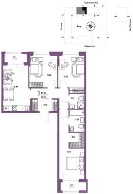 Продается 3комнатная квартира на 3 этаже от застройщика Страна Девелопмент. Площадь квартиры 81,08 кв. м. Стоимость указана без учета акций.