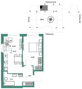 Продается 2комнатная квартира на 14 этаже от застройщика Страна Девелопмент. Площадь квартиры 41,67 кв. м. Стоимость указана без учета акций.