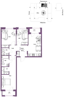 Продается 3комнатная квартира на 9 этаже от застройщика Страна Девелопмент. Площадь квартиры 85,63 кв. м. Стоимость указана без учета акций.