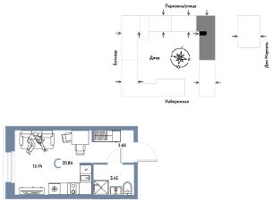 Продается 1комнатная квартира на 4 этаже от застройщика Страна Девелопмент. Площадь квартиры 20,84 кв. м. Стоимость указана без учета акций.