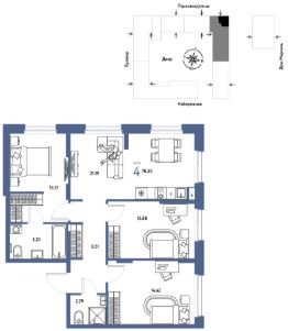 Продается 4комнатная квартира на 12 этаже от застройщика Страна Девелопмент. Площадь квартиры 78,3 кв. м. Стоимость указана без учета акций.