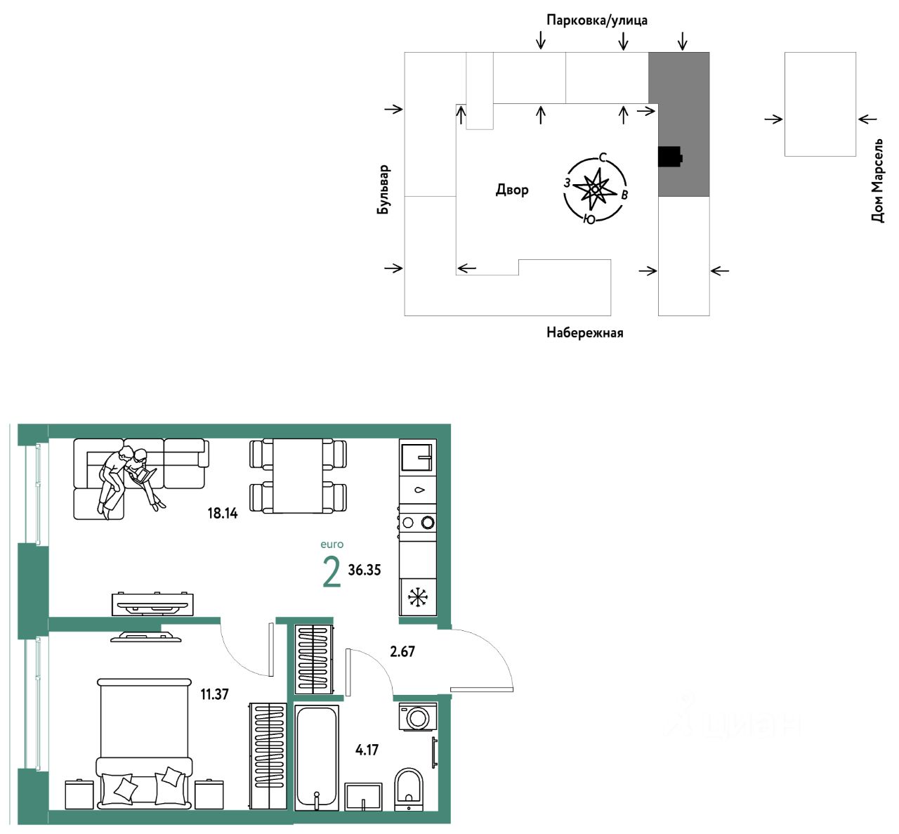 Объявление от застройщика Страна Девелопмент. Покупка квартиры защищена банком. Продается 2комнатная квартира на 12 этаже от застройщика Страна Девелопмент. Площадь квартиры 36,35 кв. м. Стоимость указана без учета акций. Европейский берег 2.0. — это продолжение легендарного жилого комплекса Европейский берег. Он включает все, что нужно для жизни, и даже больше. Этот квартал для тех, кто не готов тратить время на ненужное, жертвовать одним ради другого. Для тех, кто хочет получить все и сразу. Именно поэтому генеральная идея проекта — жилой квартал все включено. Все преимущества включены. Никаких исключений. ПРЕИМУЩЕСТВА Разнообразие планировок: от классических до квартир с мастер-спальней и террасами. Подземный паркинг с кладовыми, охраной и видеонаблюдением 24/7. Ремонт от застройщика: 5 вариантов на выбор. Закрытый двор с площадками и зонами отдыха: мост-акведук, тренажёры, лабиринты, гамаки и шезлонги. ОТДЕЛКА Базовая отделка или готовый ремонт от застройщика. В базовой отделке все черновые работы выполнены, подведены коммуникации, стены оштукатурены под маяк. В ремонт от застройщика входит 5 вариантов отделки, уже включено всё необходимое: от сантехники до кондиционера. СПОСОБЫ ПОКУПКИ Сотрудники "Страны Девелопмент" будут сопровождать вас на каждом этапе сделки, помогут получить одобрение по ипотеке или снизить ежемесячный платеж. - ипотека - материнский капитал - 100% оплата наличными - рассрочка - обмен — это выкуп вашей старой квартиры и зачисление полученных денежных средств в счет стоимости новой квартиры или в качестве первоначального взноса по ипотеке.