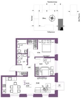 Продается 3комнатная квартира на 2 этаже от застройщика Страна Девелопмент. Площадь квартиры 64,16 кв. м. Стоимость указана без учета акций.
