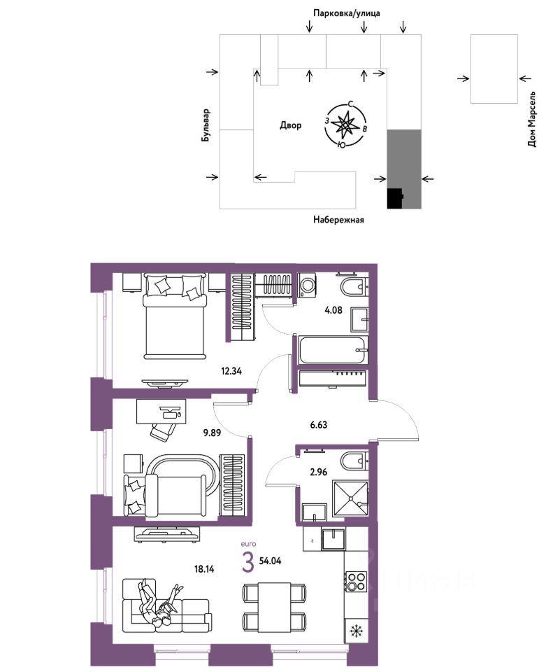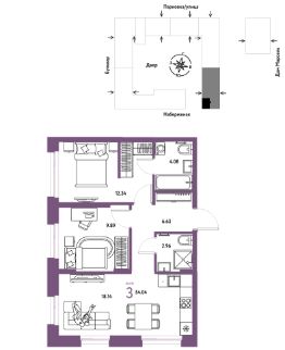 Продается 3комнатная квартира на 2 этаже от застройщика Страна Девелопмент. Площадь квартиры 54,04 кв. м. Стоимость указана без учета акций.