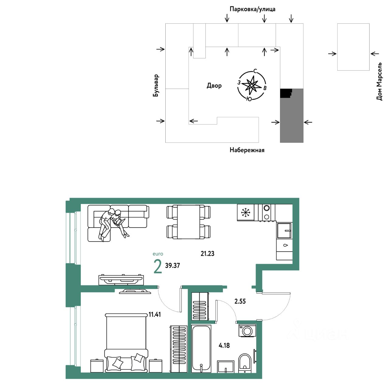 Продается 2комнатная квартира на 4 этаже от застройщика Страна Девелопмент. Площадь квартиры 39,37 кв. м. Стоимость указана без учета акций.