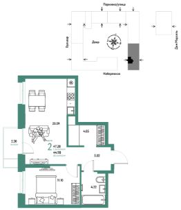Продается 2комнатная квартира на 6 этаже от застройщика Страна Девелопмент. Площадь квартиры 47,28 кв. м. Стоимость указана без учета акций.