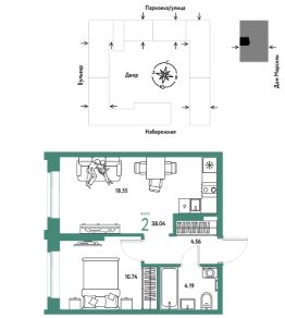 Продается 2комнатная квартира на 6 этаже от застройщика Страна Девелопмент. Площадь квартиры 38,04 кв. м. Стоимость указана без учета акций.