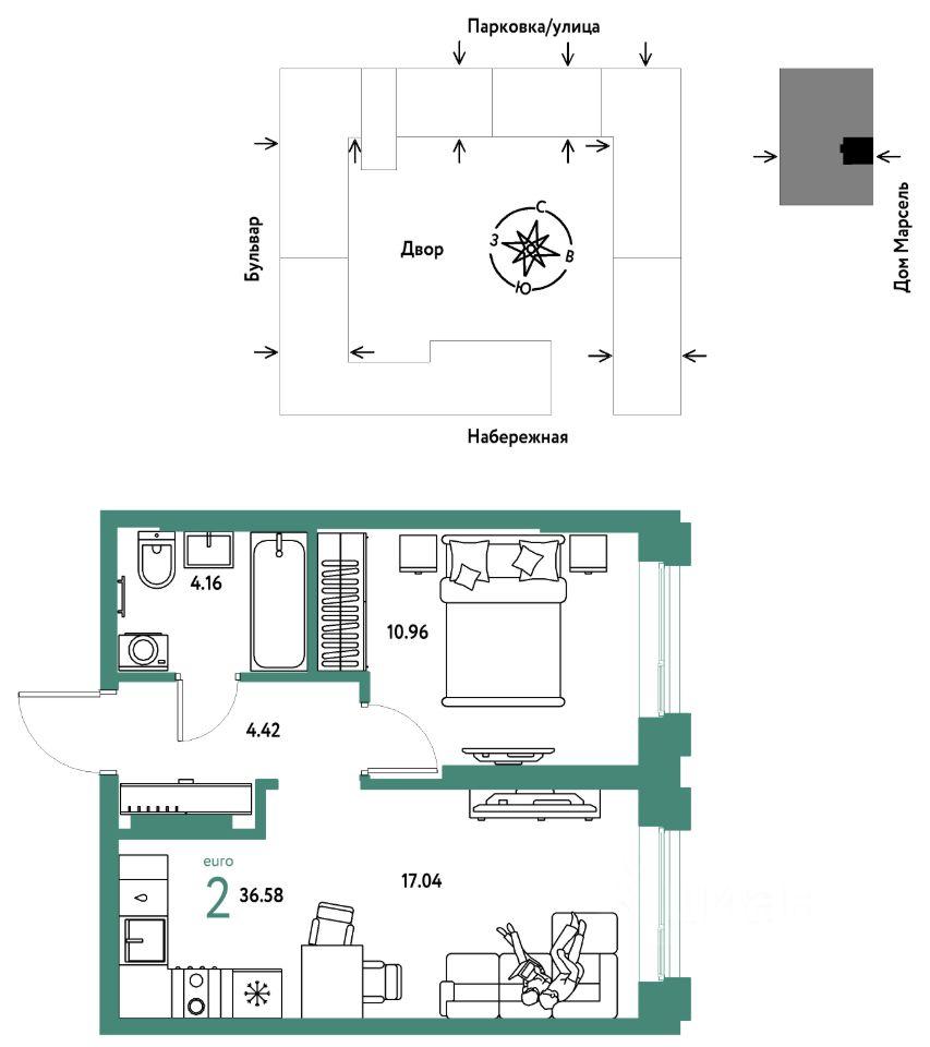 Продается 2комнатная квартира на 6 этаже от застройщика Страна Девелопмент. Площадь квартиры 36,58 кв. м. Стоимость указана без учета акций.
