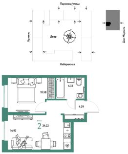 Продается 2комнатная квартира на 13 этаже от застройщика Страна Девелопмент. Площадь квартиры 34,22 кв. м. Стоимость указана без учета акций.