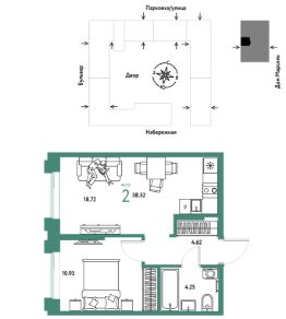 Продается 2комнатная квартира на 14 этаже от застройщика Страна Девелопмент. Площадь квартиры 38,52 кв. м. Стоимость указана без учета акций.