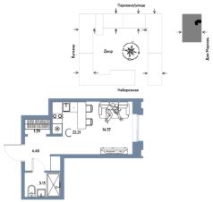 Продается 1комнатная квартира на 20 этаже от застройщика Страна Девелопмент. Площадь квартиры 23,31 кв. м. Стоимость указана без учета акций.