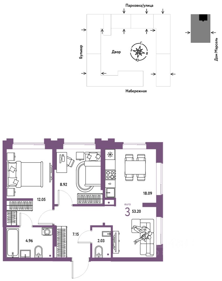 Продается 3комнатная квартира на 24 этаже от застройщика Страна Девелопмент. Площадь квартиры 53,2 кв. м. Стоимость указана без учета акций.