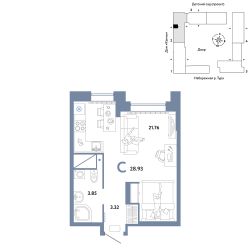 Продается 1комнатная квартира в новом ЖК "Европейский берег". Общая площадь квартиры 28,93 кв. м. Сдача — в 4 квартале 2025 года.