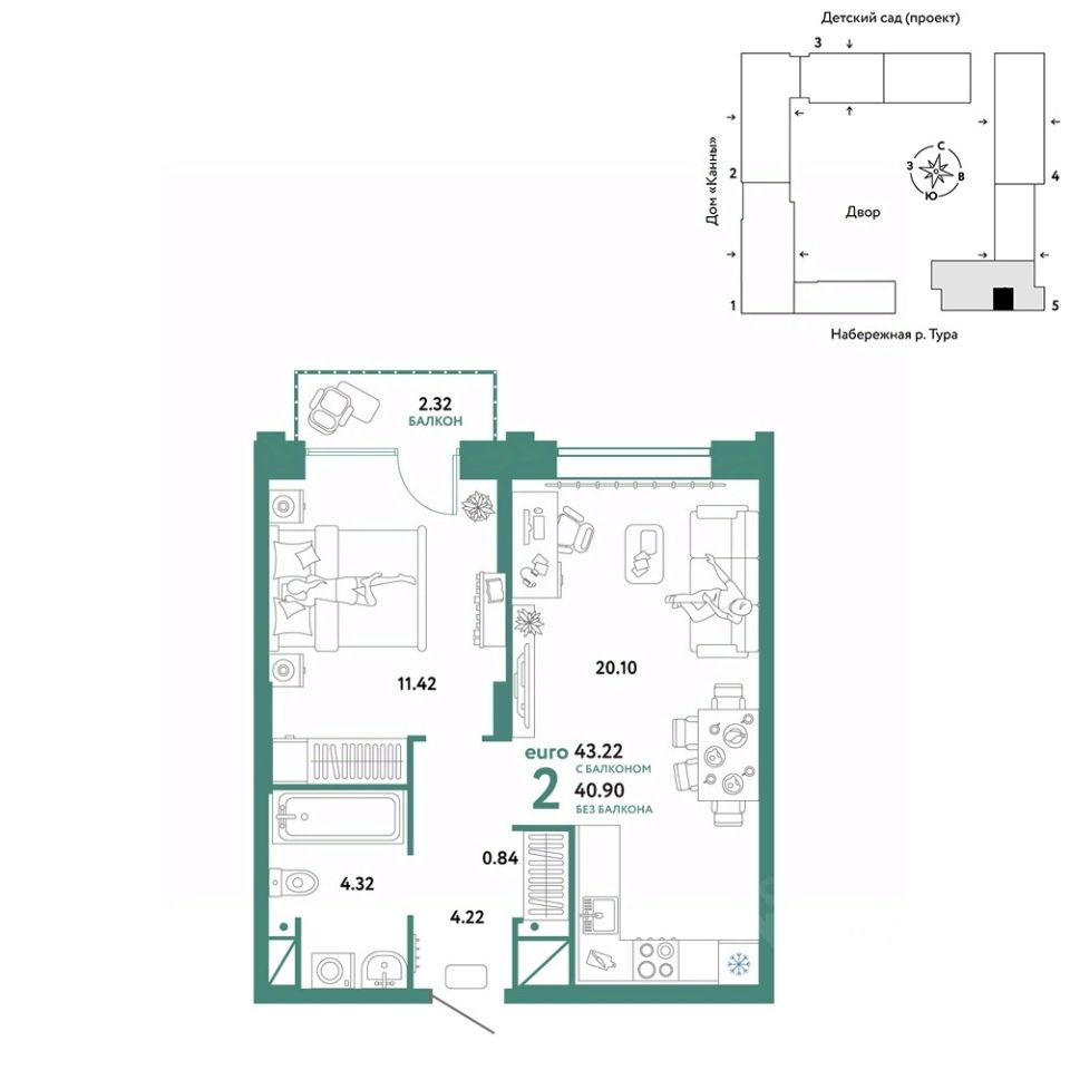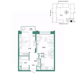 Продается 2комнатная квартира в новом ЖК "Европейский берег". Общая площадь квартиры 43,22 кв. м. Сдача — в 4 квартале 2025 года.