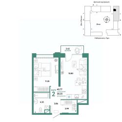 Продается 2комнатная квартира в новом ЖК "Европейский берег". Общая площадь квартиры 40,77 кв. м. Сдача — в 4 квартале 2025 года.