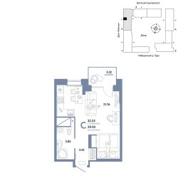 Продается 1комнатная квартира в новом ЖК "Европейский берег". Общая площадь квартиры 32,25 кв. м. Сдача — в 4 квартале 2025 года.