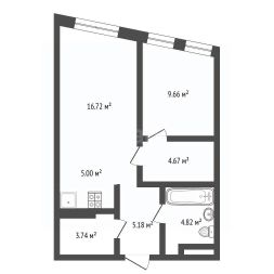 • Практичная планировка 1+ (кухня-гостиная + изолированная спальня)
