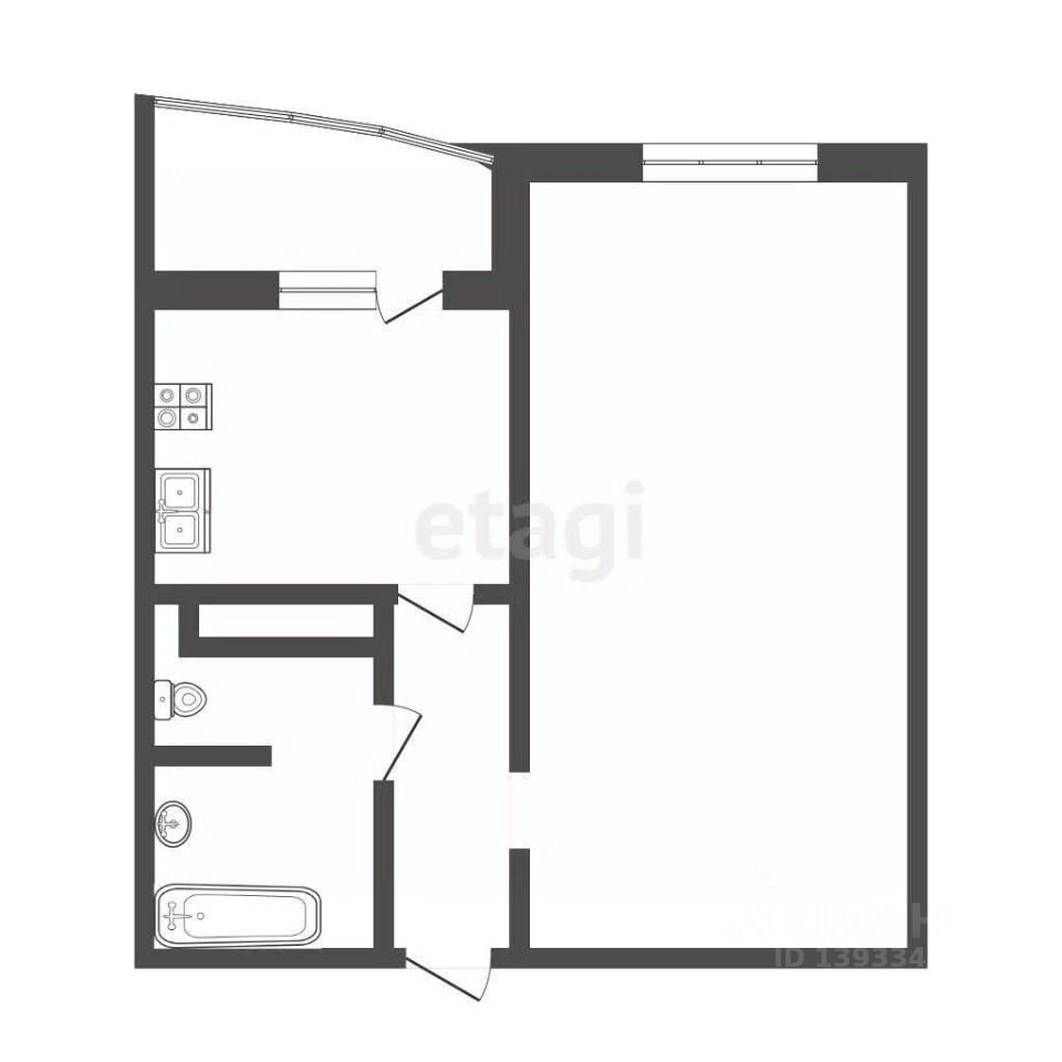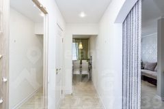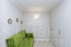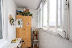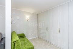 Комната разделена небольшой перегородкой, можно сделать рабочую зону или оставить дополнительное спальное место. В комнате встроенный шкаф.