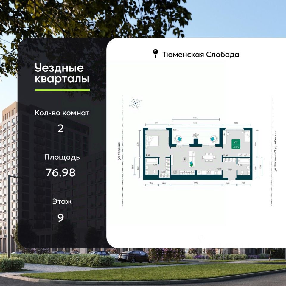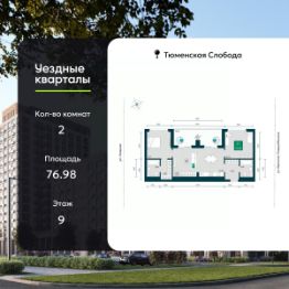 Продается 2-комн. квартира с предчистовой отделкой в ЖК "Уездные кварталы" на 9 этаже. Общая площадь: 76.98 кв.м. Высота потолков 2.7 м.