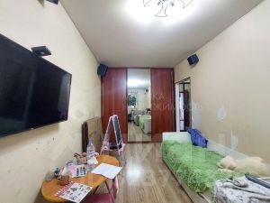 При продаже остается мебель: кухонный гарнитур с электроплитой, шкаф-купе и кондиционер в комнате.