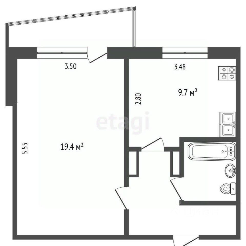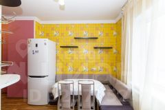 Функциональная кухня: Уникальная для "однушки" угловая обеденная зона — место для ваших завтраков и вечерних посиделок.