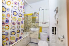 3. Чистый и светлый совмещенный санузел выполнен в светлой гамме.