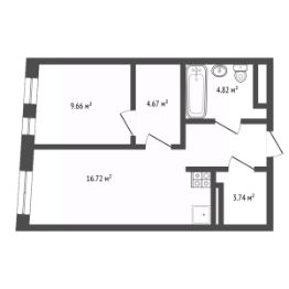 • Практичная планировка 1 (кухня-гостиная изолированная спальня)