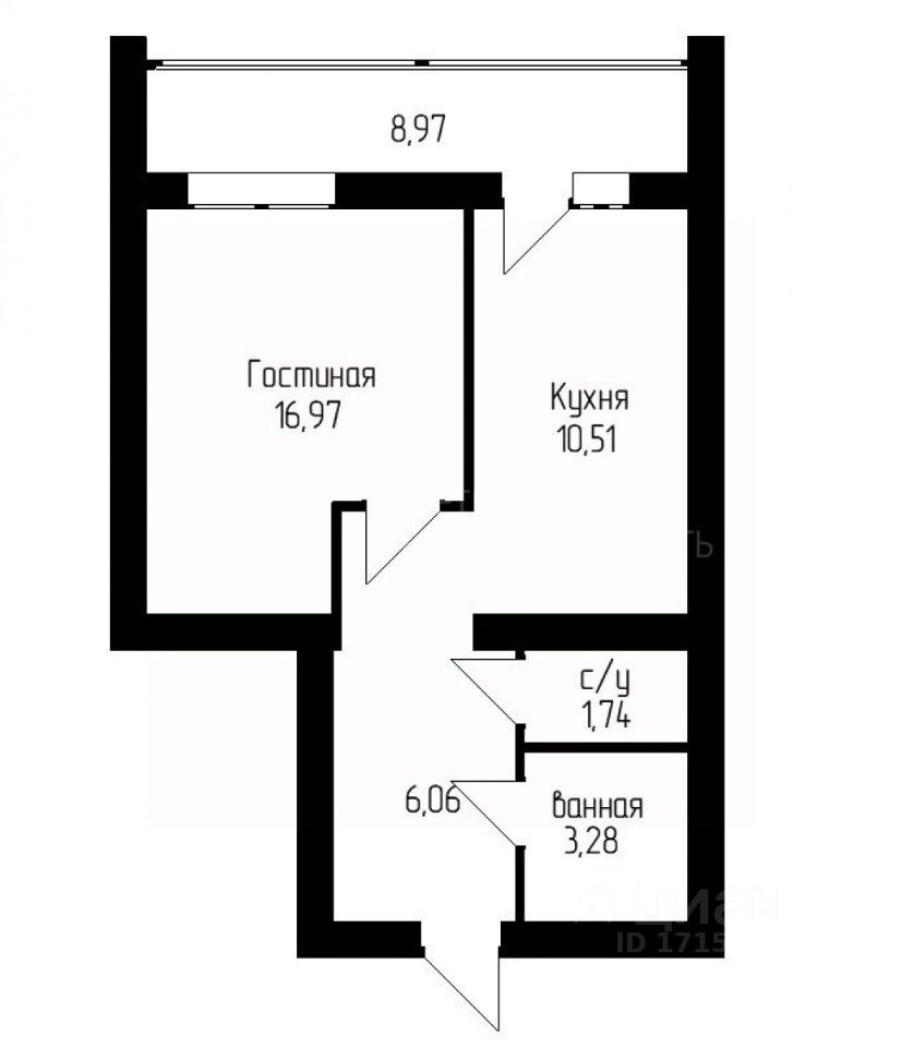 в комнате — диван, стол, шкаф-полка для ТВ; на балконе — шкаф-купе (балкон утеплён);