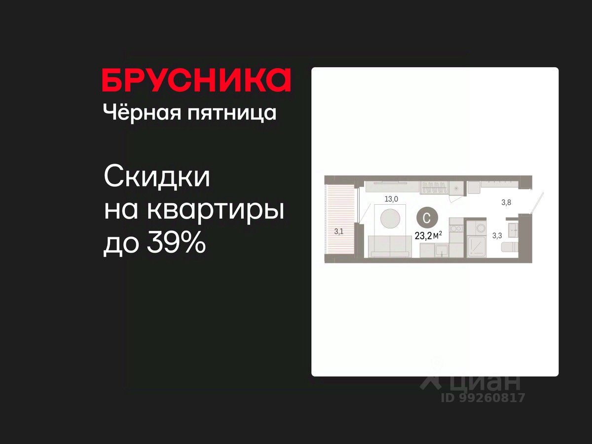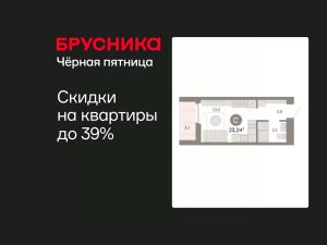 Просторная 1-комн. студия с предчистовой отделкой в ЖК "Зарека" на 16 этаже. Общая площадь: 23.14 кв.м. Высота потолков 2.7 м.