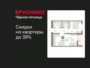 Однокомнатная квартира с предчистовой отделкой в ЖК "Зарека" на 16 этаже. Общая площадь: 47.44 кв.м. Высота потолков 2.7 м.