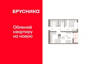 Продается 1-комн. квартира от застройщика с предчистовой отделкой в ЖК "Зарека" на 16 этаже. Общая площадь: 47.44 кв.м. Высота потолков 2.7 м.