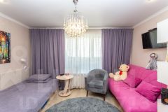 Продается современная квартира площадью 45.3 кв. м в новом доме 15 микрорайона. Планировка 1+ включает просторную кухню-гостиную 21 кв. м, изолированную комнату 15 кв. м с панорамным окном и прихожую 6 кв. м. Выполнен качественный ремонт с использованием современных материалов: уложен ламинат, смонтированы натяжные потолки, установлена надежная входная дверь. Кухонный гарнитур с практичной барной стойкой изготовлен на заказ. Ключевым преимуществом является огромный застекленный балкон длиной свыше 7 метров, выходящий во двор. Дом оснащен двумя лифтами — пассажирским и грузовым. Инфраструктура развита: в пешей доступности новая школа 16 и детский сад, гипермаркет "Лента", магазины "Магнит" и "Пятерочка", три аптеки. На придомовой территории обустроена просторная парковка, большая детская и две спортивные площадки. Отличная транспортная доступность обеспечена благодаря близости новой трассы М-8, также в районе есть прогулочные и велосипедные дорожки. Объект предлагает готовое комфортное проживание без дополнительных вложений.