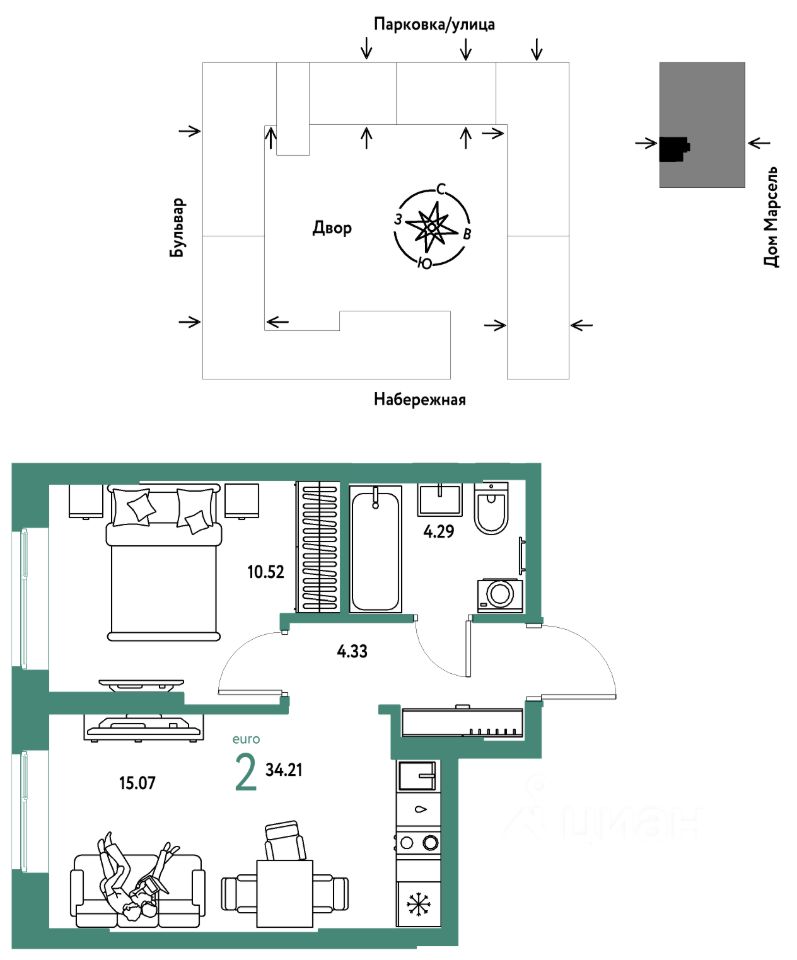 Продается 2комнатная квартира на 5 этаже от застройщика Страна Девелопмент. Площадь квартиры 34,21 кв. м. Стоимость указана без учета акций.