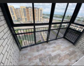лоджия 4,44 кв.м.(3,5*1,35 м с витражными раздвижными рамами, пол керамогранит, свет+розетки)