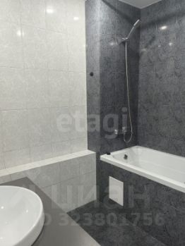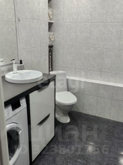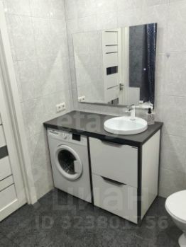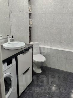 Санузел: Отделка керамической плиткой, современная сантехника и встроенная мебель.