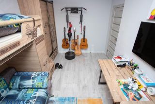 В квартире выполнен современный ремонт. На полу уложен качественный ламинат, по всей площади натяжные потолки. Уютная квартира в лаконичном дизайне. При продаже в квартире остаётся кухонный гарнитур со встроенной техникой,