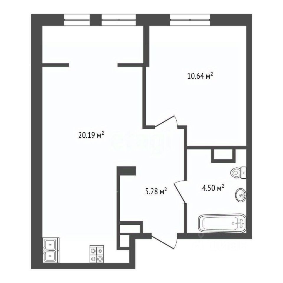 Кухня: 10.64 м² | Санузел: Совмещенный