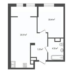 Общая площадь: 40.3 м² | 1 комната | Монолитно-каркасный дом, 2021 г.