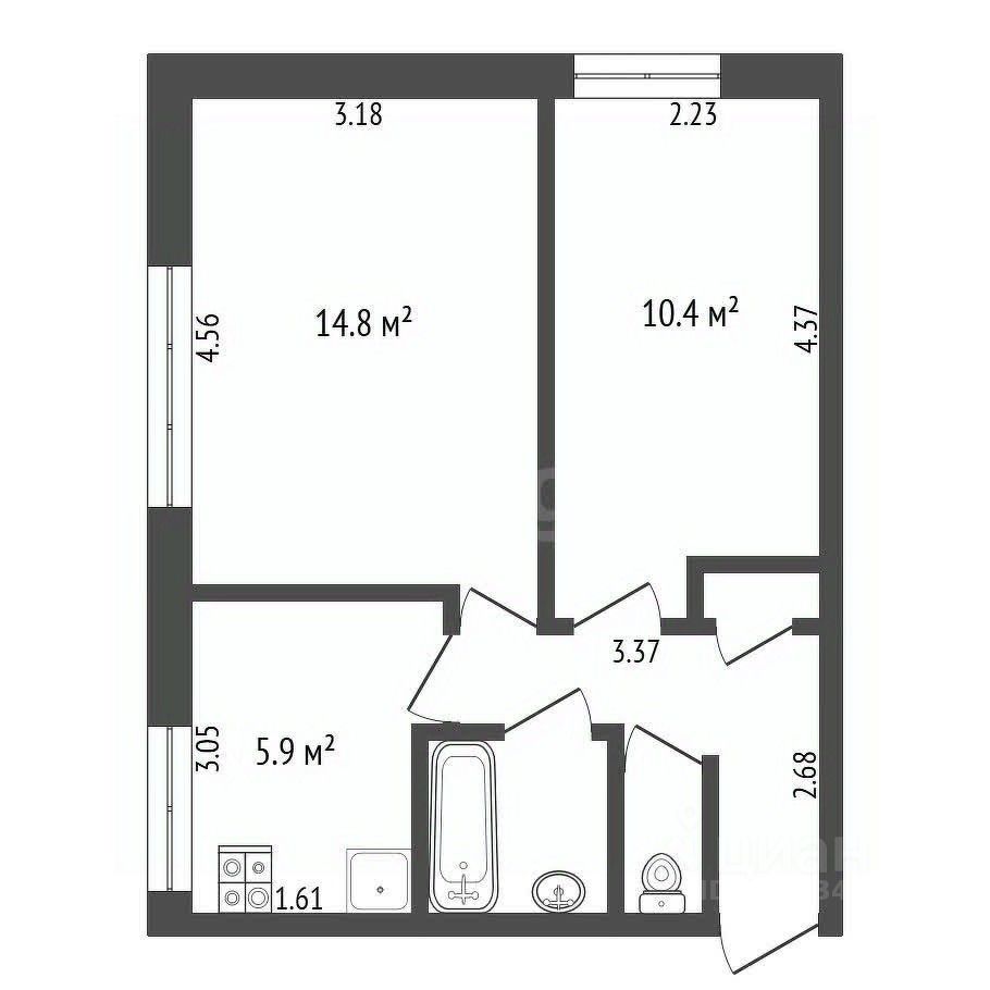 Двухкомнатная квартира 39,8 м² - воплотите свои дизайнерские идеи!