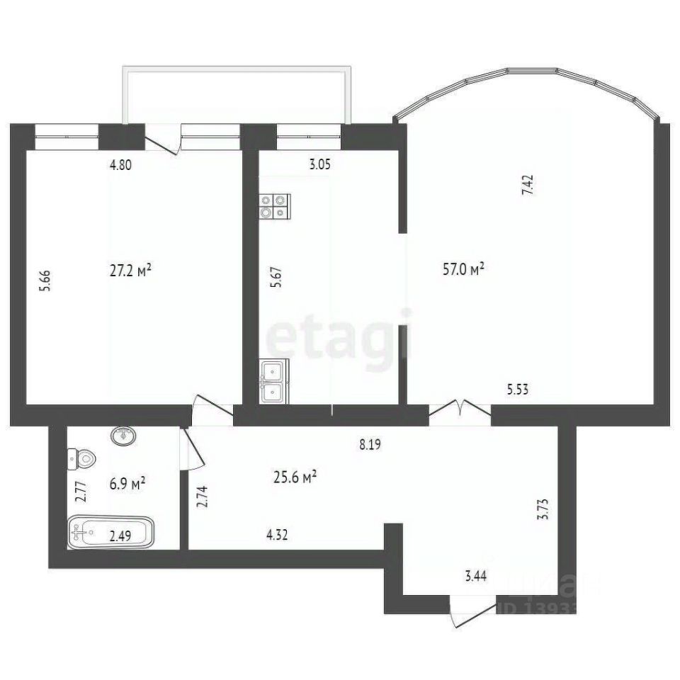 - Площадь: 116.7 м² — нестандартно большая для двух комнат, что даёт свободу для смелых дизайнерских решений!