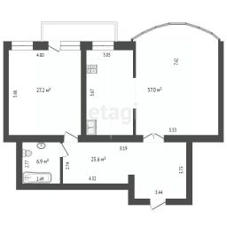 Такой метраж в двухкомнатной квартире — редкость в центре города. Не упустите шанс создать здесь свой идеальный мир!