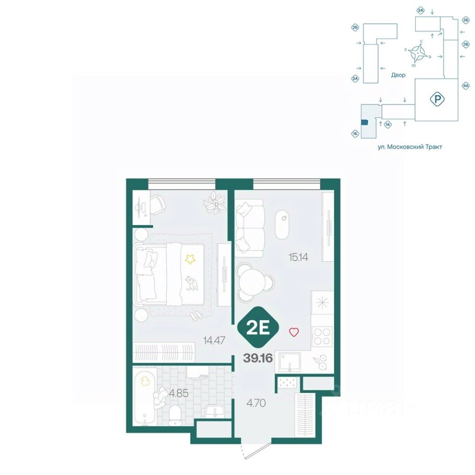 Однокомнатная квартира с уютной кухней-гостиной, большой спальней и вместительной ванной комнатой. В прихожей ниша под шкаф. Подойдет для молодой семьи.