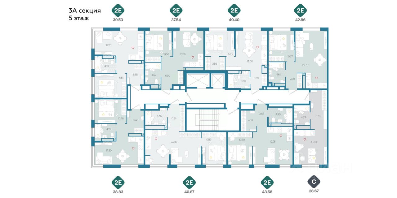 42,86 м²