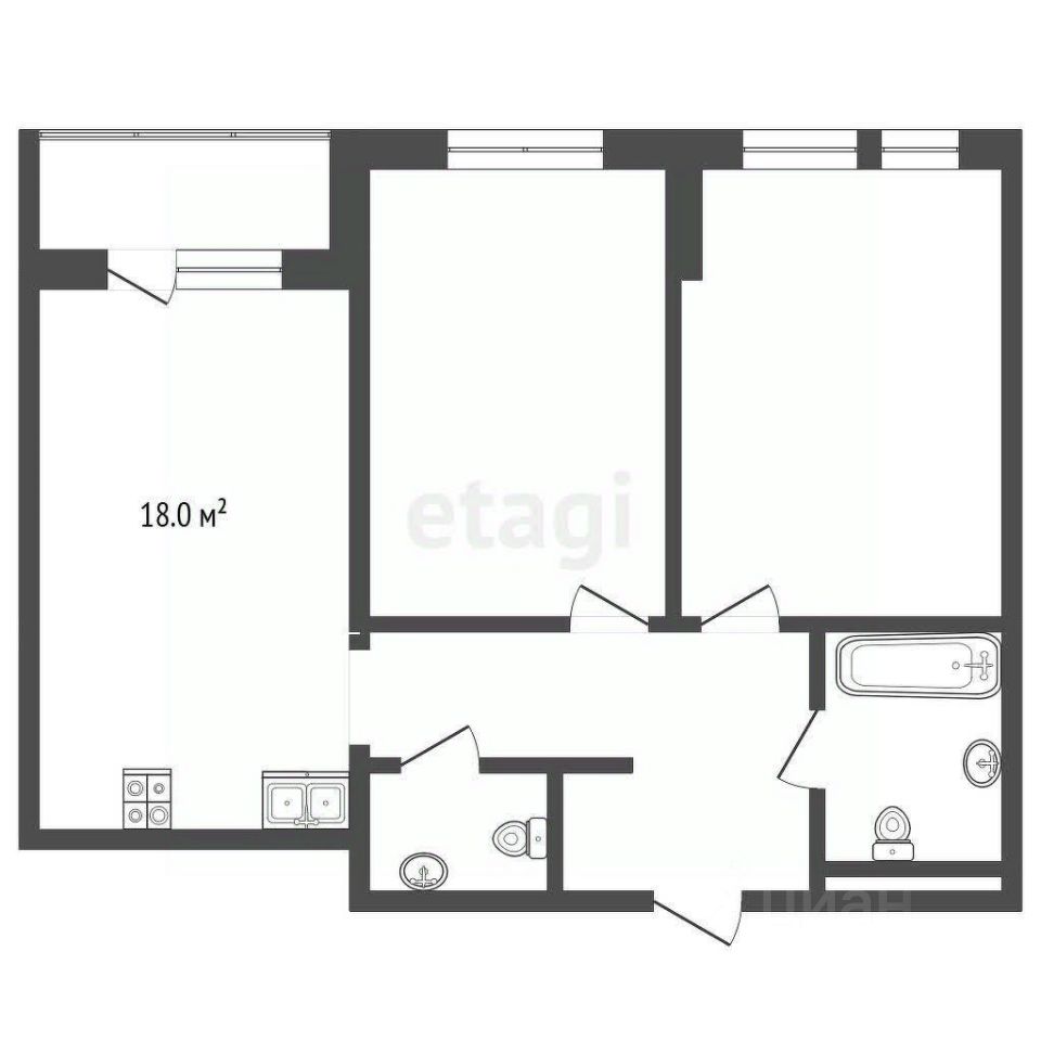 Удобная планировка 2+: отдельная спальня, уютная детская и просторная кухня-гостиная с выходом на лоджию.