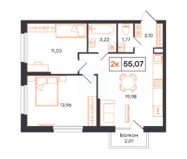 Продаётся 2-комнатная квартира в строящемся доме (Корпус 4Б (Полевая, д. 117, корпус 13)), срок сдачи: IV-кв. 2026, общей площадью 55.07 кв.м., на 6 этаже. Новый жилой комплекс "Фатера" от Специализированного застройщика "Рубин" расположен по адресу: г. Тюмень, по ул. Полевая.
