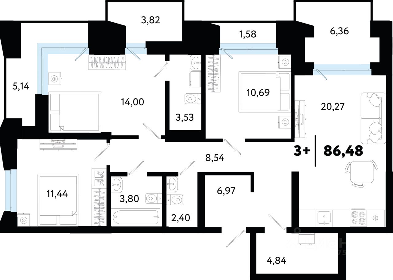 На территории 14 гектаров создадут современный социокультурный кластер с 8 домами комфорт-класса высотой от 5 до 25 этажей, детским садом и благоустроенной набережной. Проект включает детские и спортивные площадки, приватные дворы-парки, а рядом есть поликлиника, школа и детский сад. Квартиры с высокими потолками, окнами в пол и предчистовой отделкой предлагают удобные планировки с кухнями-гостиными, мастер-спальнями, двумя санузлами, гардеробными и постирочными. Будут квартиры с видом на реку Тура.