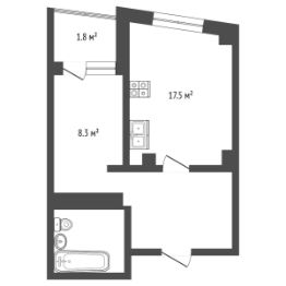 Планировка квартиры очень удачная: большая прихожая, в которой разместился кухонный гарнитур, совмещенный просторный санузел, гостиная 18 м2 и дополнительная спальня с выходом на утепленную лоджию.